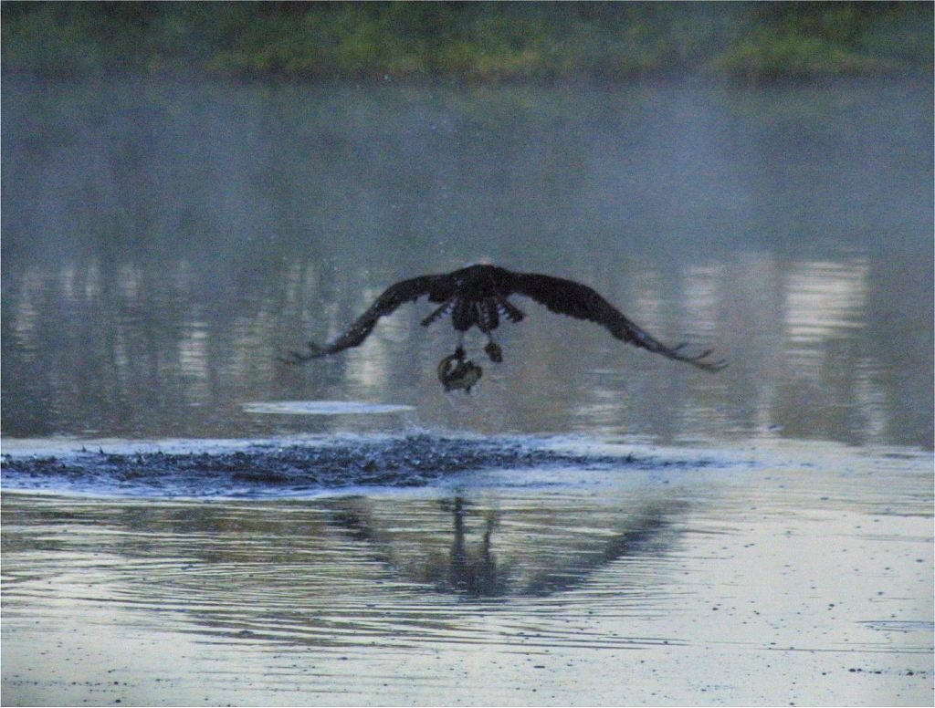 Images taken early morning. Osprey fishing on golf course lake. Had to use