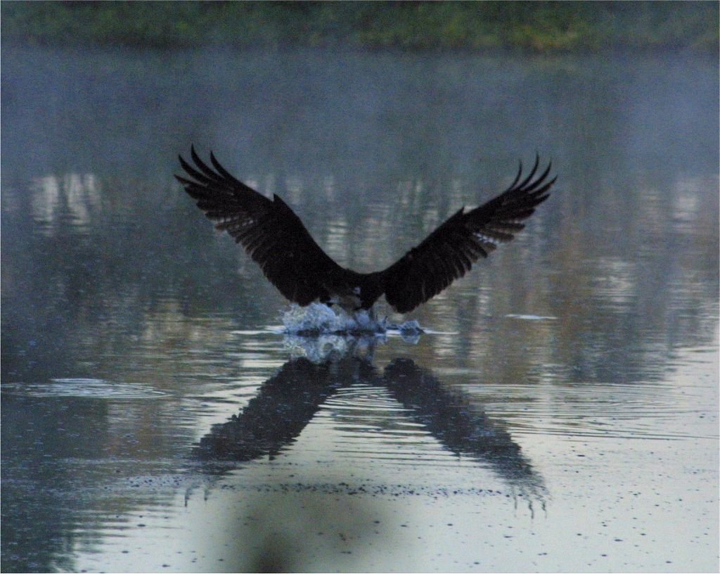 Images taken early morning. Osprey fishing on golf course lake. Had to use iso800, 500 shutter speed, 70-300mm lense, at 300mm. Pretty noisey but intesesting affect. Pictures reduced to 1024x768, Click for Large Image